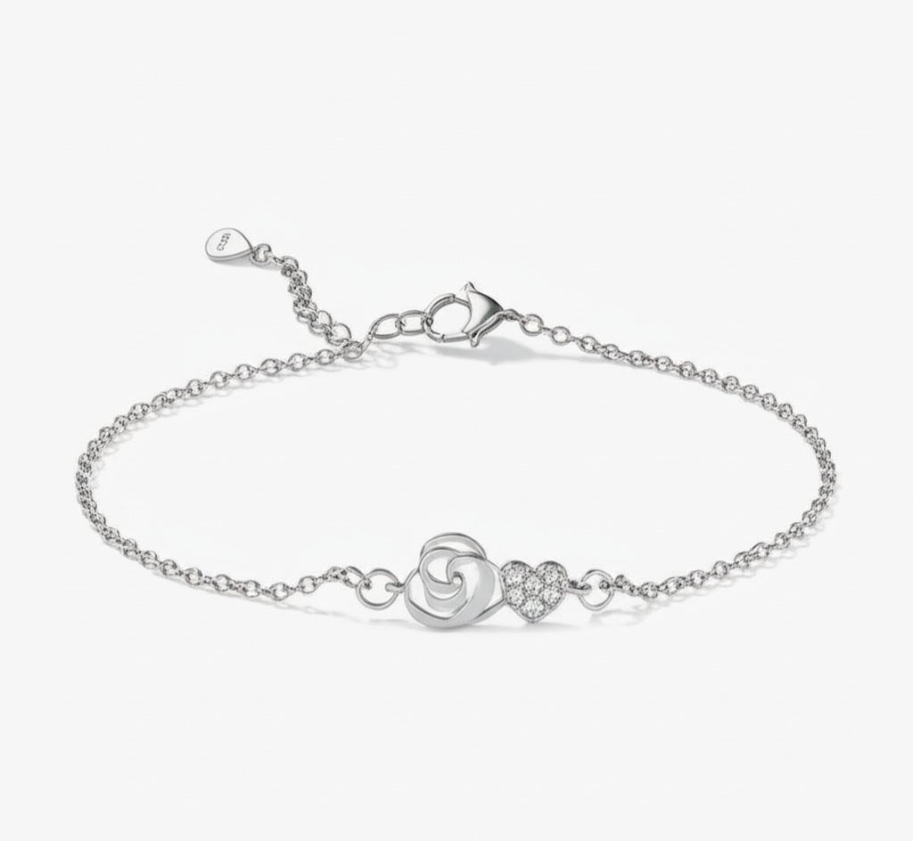 Diseño que entrelaza una flor que simboliza la belleza que florece en la vida y un corazón brillante que representa el amor y los lazos que nos unen. Es un recordatorio tangible del amor que crece.